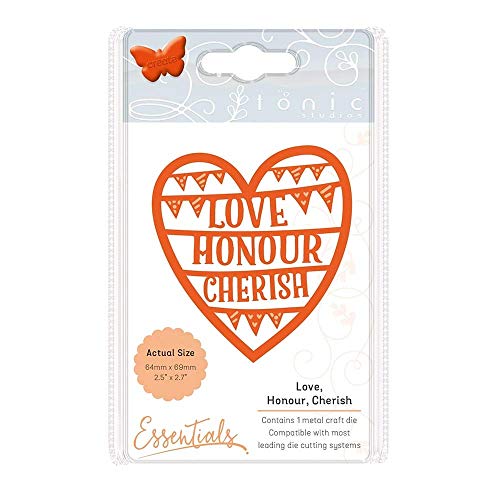 Tonic Studios Fustelle Miniature Moments, Parole in Inglese Love, Honour, Cherish, Grigio