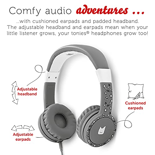 Tonies Cuffie per bambini cablate per Toniebox, cuffie imbottite con limitazione del volume per ascoltare audiolibri, cavo da 1,2 m e jack da 3,5 mm, grigio