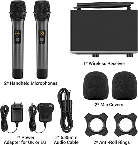 TONOR Microfono wireless UHF professionale dinamico doppio microfono senza fili, sistema di microfono a mano, set per karaoke, feste, DJ, chiesa, matrimonio, riunione, lezione, 60 metri