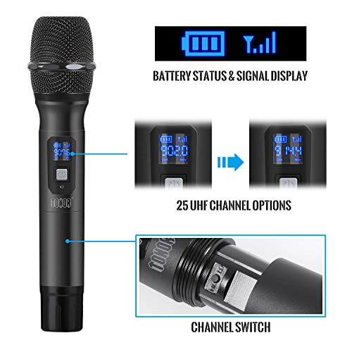 TANTI POSSIBILI UTILIZZI, ALTA QUALITÀ AUDIO: Il nuovo microfono wireless di TONOR offre una qualità audio professionale, una tecnologia di trasmissione potenziata, con conseguente uscita del suono a livelli superiori. Può essere perfettamente utilizzata per karaoke con amici e parenti, feste, in chiesa, DJ set, matrimoni, riunioni di lavoro, attività in aula, spettacoli all'aperto o al coperto, ecc.