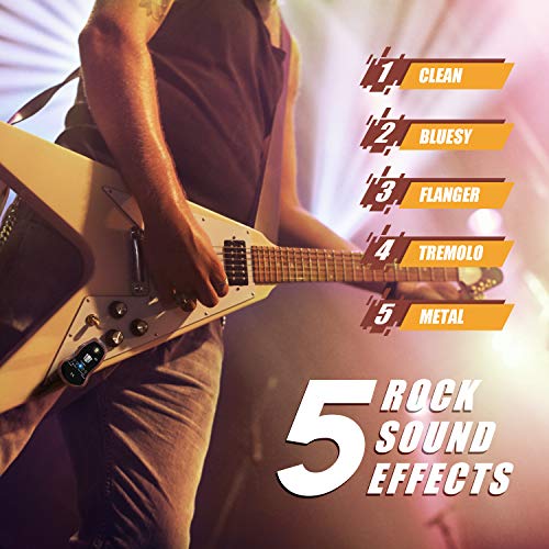 CINQUE EFFETTI SONORI - ORIGINALI / BLUES / FLANGER / TREMOLO / METALLO Se sei un chitarrista, questo sistema wireless per chitarra cambierà per sempre il tuo modo di suonare. A confronto con gli effettori tradizionali, la sua speciale tecnologia audio DSP permette di sviluppare un suono ambientale con distorsione ridotta e output più chiaro.