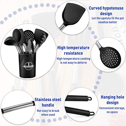【Diverse modalità di stoccaggio】 Forniamo poggia cucchiaio in modo da poter mettere il set di utensili da cucina. Mantieni la tua cucina pulita. Un foro per appendere su ogni maniglia per una comoda conservazione. Con 10 ganci a forma di S, puoi facilmente organizzare lo spazio della tua cucina semplicemente appendendo il tuo set di utensili da cucina sui tuoi scaffali o scaffali, rendendo la tua cucina più efficiente.