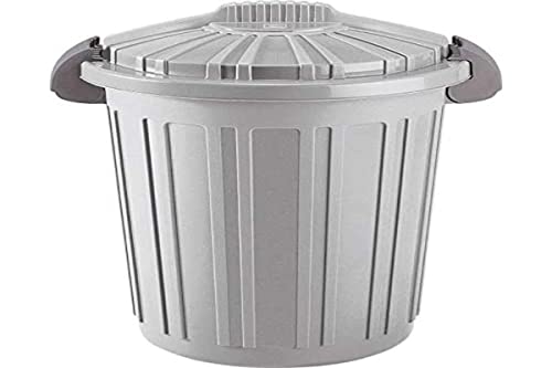 Tontarelli - Bidone in Plastica con Coperchio 23 Litri, Dimensioni 34,5 x 46 cm, Colore Argento, Modello TEO