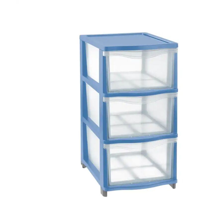 Tontarelli Cassettiera modulare a 3 cassetti medi Cover Line, colore trasparente e Azzurro. Dimensioni: 26,8x37x43,6cm Colore: Trasparente e Azzurro.