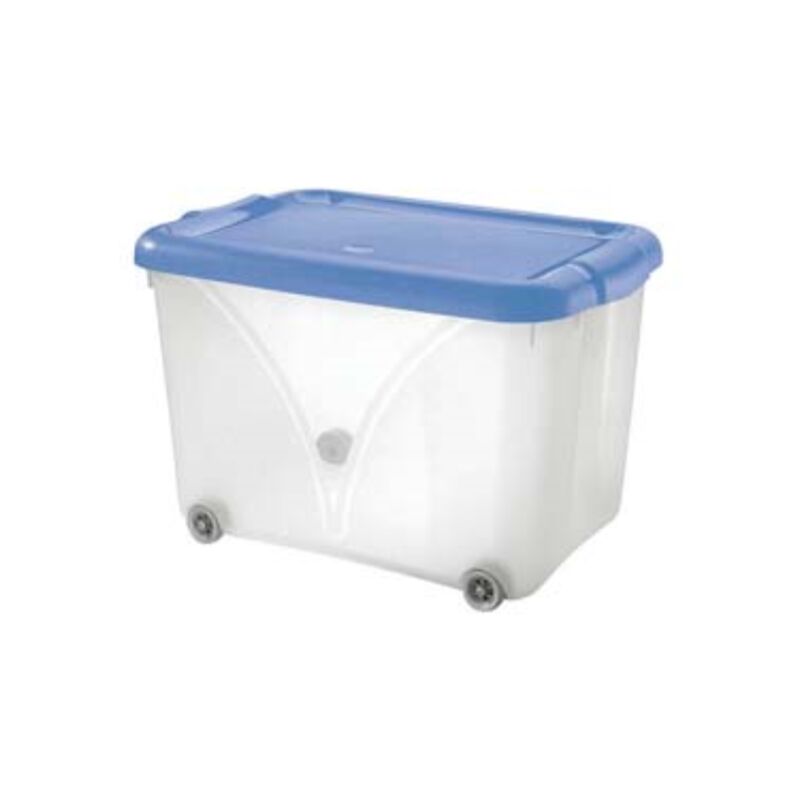 Cm.58,5x38,5x38h. lt.60 box trasparente, coperchio azzurro Categoria merceologica: Organizzazione degli spazi domestici - Casalinghi - Cassettiere e contenitori domestici
