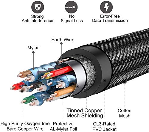 [Cavo HDMI 2.0 ad alta velocità e trasferimento dati stabile] Questo cavo HDMI ad alta velocità supporta il trasferimento di dati a 18 Gbps, il trasferimento di video, audio e foto alla velocità della luce senza dover attendere il buffering. Goditi eventi sportivi 4K Ultra High Definition, successi cinematografici, i tuoi episodi TV preferiti o gioca a giochi su larga scala senza rimanere bloccato. Plug and play senza necessità di preinstallare i driver.