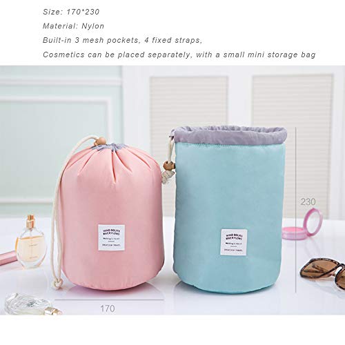 Borsa da viaggio rotonda, di forma cilindrica, lavabile, con possibilità di essere appesa, ideale per conservare cosmetici, prodotti da bagno e trucchi.