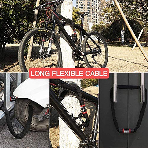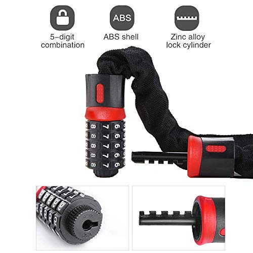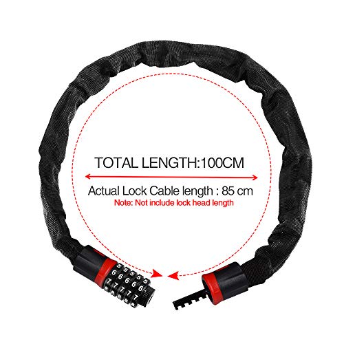 TONWON Lucchetto a Catena per Bicicletta, Combinazione di Cavi per Bici, Lucchetto di Sicurezza con Password a 5 Cifre per Biciclette, Motociclette, Porte, Cancelli e Recinzioni (1m)