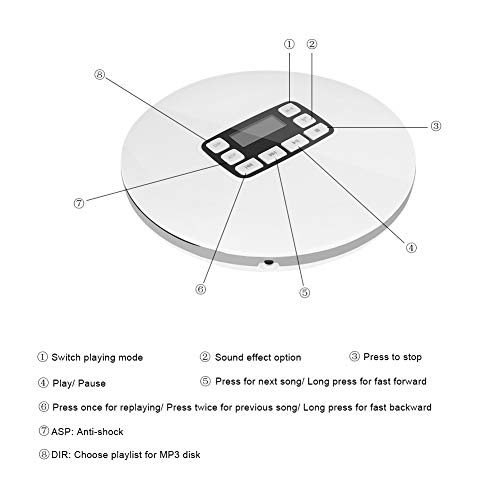 Tonysa Lettore CD portatile, lettore CD, lettore stereo HiFi per CD/CD RW/MP3/CD DA/WMA con protezione dagli urti ASP, cuffie, schermo LCD, effetti sonori come BBS/Pop/Jazz/Rock/ecc