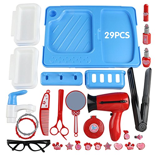TONZE Valigetta Bellezza Bambina Asciugacapelli Giocattolo Set Parrucchiere Giochi d'imitazione, 29 Pezzi