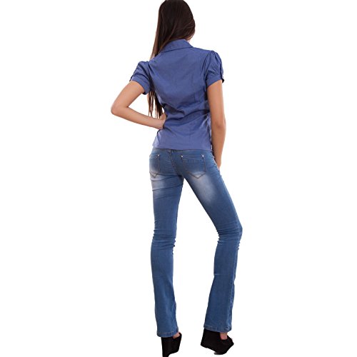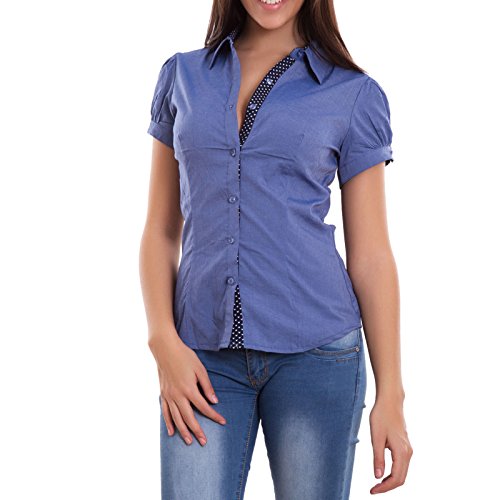Toocool - Camicia Donna Camicetta Avvitata Pois Maniche Corte Palloncino Nuova G-7066 [XL,Blu Scuro]