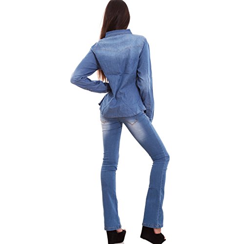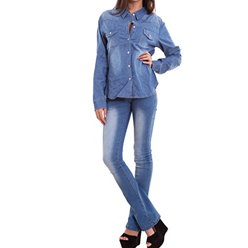 Toocool - Camicia Jeans Donna Maglia Maniche Lunghe arrotolabili Casual Bottoni Nuova KY19 [XXXL,Blu]