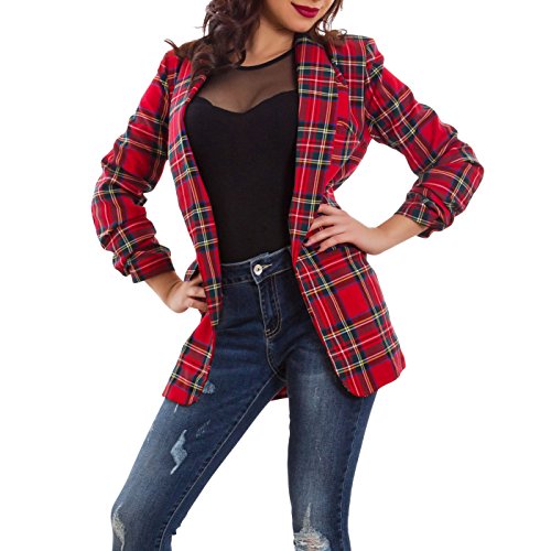Toocool - Giacca Donna Avvitata Elegante Scozzese Tartan Quadri Scacchi Nuova GI-10642 [S,Rosso]
