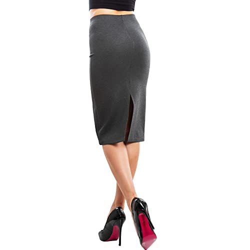 Gonna Donna Lunga Longuette Aderente Vita Alta Elegante Spacco VI-1938 [L,Grigio]