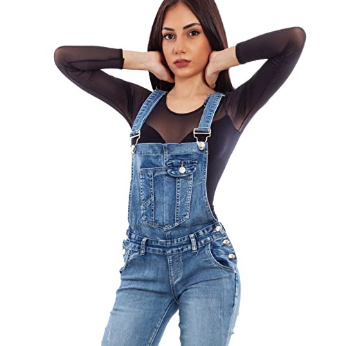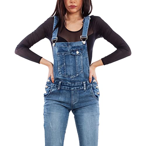 Toocool Salopette Jeans Donna Overall Tuta Intera Jumpsuit Pantaloni XM-987 [L,Blu]