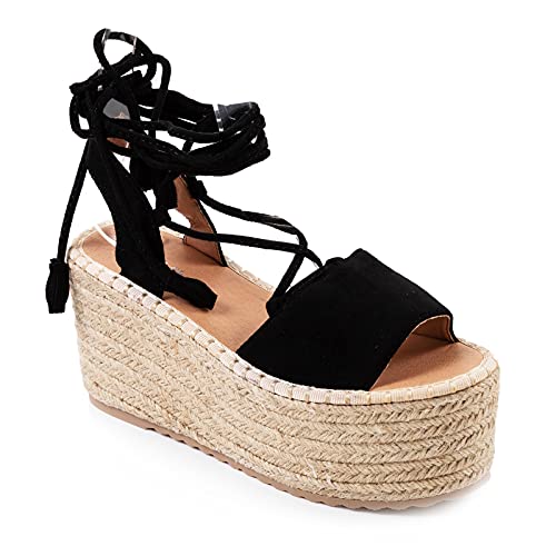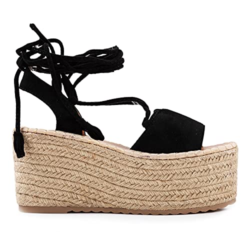Toocool - Scarpe Donna Sandali Schiava Corda camoscio Flatform Lacci GI-2562 [41,HJ7083 Nero]