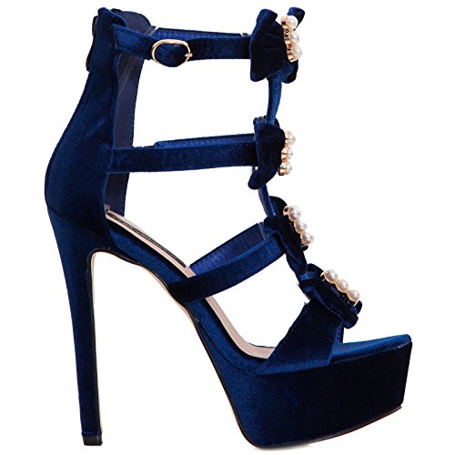 Toocool - Scarpe Donna Sandali Stivaletti Velour Velluto Gioiello Tacchi Alti BL7202 [38,Blu]