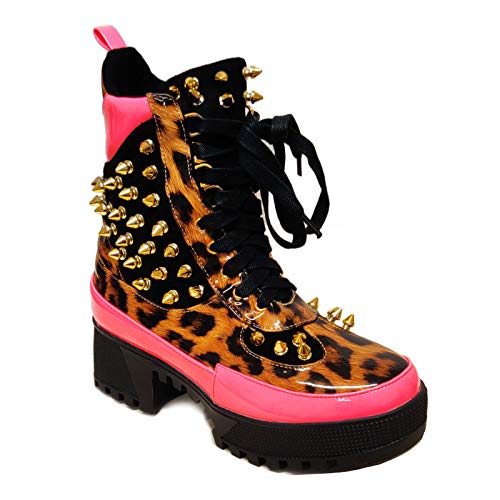 Toocool - Scarpe Donna Stivali Anfibi Borchie leopardati carrarmato Q2AX1946-6 [36,Fuxia]