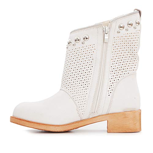 Toocool - Stivali Donna Bassi Biker Boots Motociclista Borchie Traforati Nuove K811 [36,Beige]