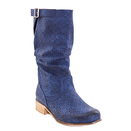 Toocool - Stivali Donna Biker Traforato Estivo Motociclista Queen Helena Nuovi QH16033 [38,Blu]