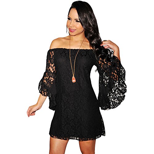 Toocool Vestito Donna Miniabito Carmen Scollo Barchetta Pizzo Elegante Nuovo DL-1103[Nero,M]