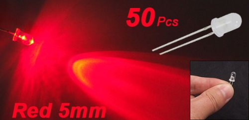 TOOGOO(R)) 50 pz Diodo ad emissione luminosa LED rosso testa rotonda trasparente diametro 5mm