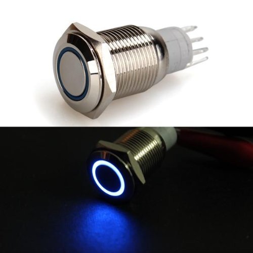 TOOGOO(R) Interruttore a Pulsante in Metallo con LED Blu 16mm 12V 3A per Auto