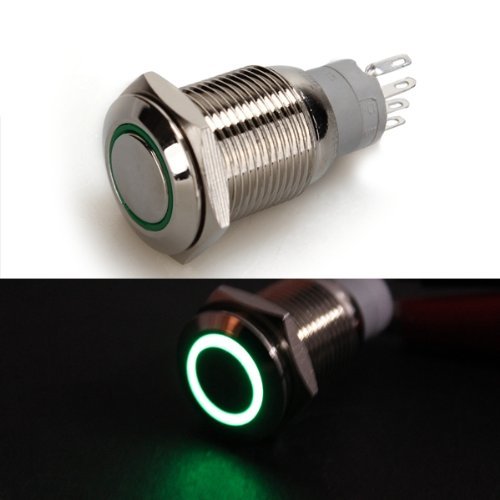 TOOGOO(R) Interruttore a Pulsante in Metallo con LED Verde 16mm 12V 3A per Auto