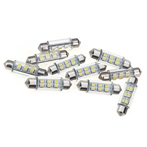 TOOGOO(R) 10 PZ LAMPADA LUCE Siluro 6 SMD LED Bianca DC 12V PER TARGA AUTO 39MM