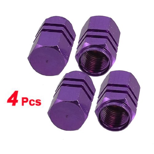 TOOGOO(R) 4 x Viola Hexagon lega di alluminio valvola gomma Tappi per Auto