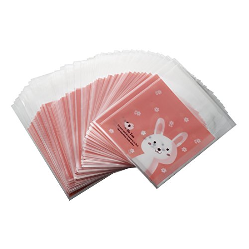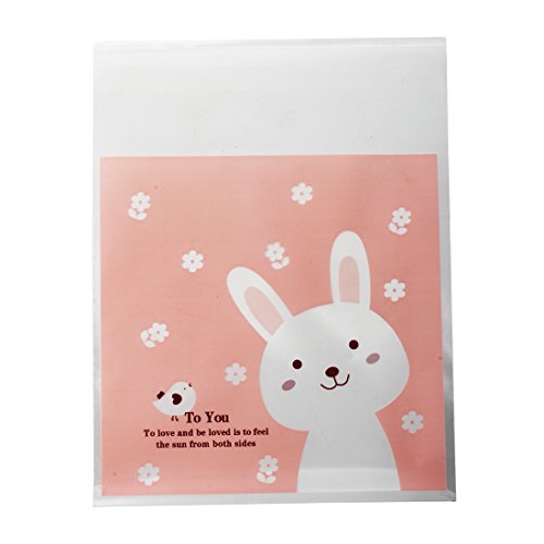 TOOGOO(R) 100 pezzi Rosa per conigli Caramelle Cookies Dolci Auto adesivo Regali Bag