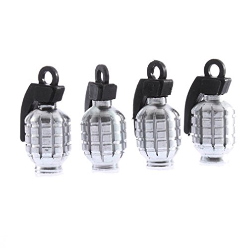 TOOGOO(R) 4 pezzi Copertura tappo valvola a forma di Granata Blu Mini Auto pneumatico della gomma argento
