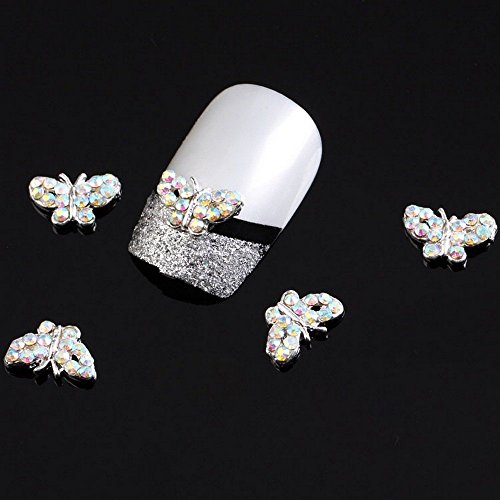 TOOGOO(R) 10 pezzi farfalla perline lega 3D di arte del chiodo Fette Glitters DIY Decorazioni Argento
