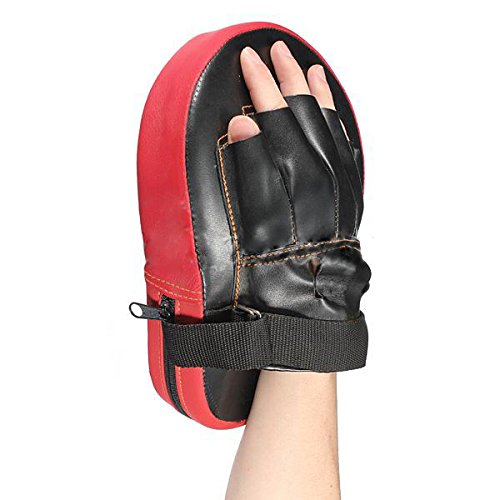 100% nuovo e di alta qualita' densa imbottitura in schiuma per la protezione e assorbimento degli urti leggeri per ulteriori comodita' Cinque slot dita e guanti sul ciascun posteriore possono tenere il pad con fermezza e porta comodamente La superficie sono realizzati in pelle PU durevole di alta qualita' e imbottita con alta schiuma potenza puo' essere utilizzato per Muay Thai kick Boxing MMA Training