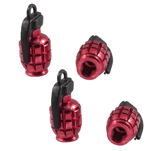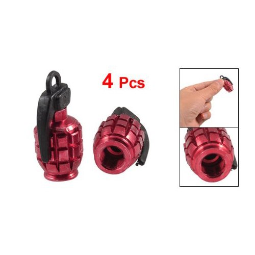 TOOGOO(R) 4 Pz Tappo valvola del Pneumatico Auto Crimson in Lega 7 Millimetri a Forma di Granata
