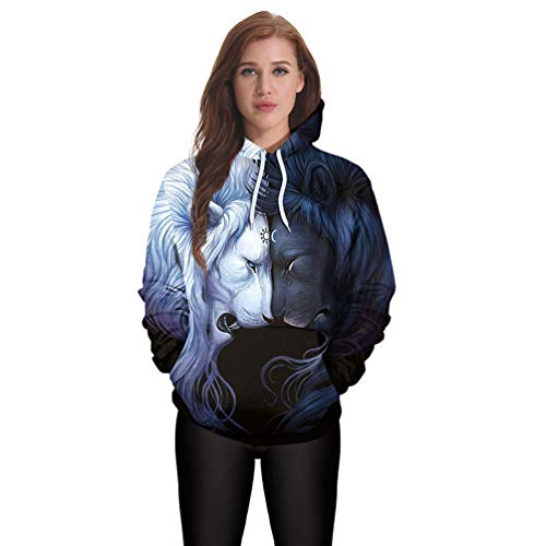 Tookang Unisex Felpa a Maniche Lunghe Hoodie da Stampa Digitale Leone 3D Colorato Pullover con Cappuccio