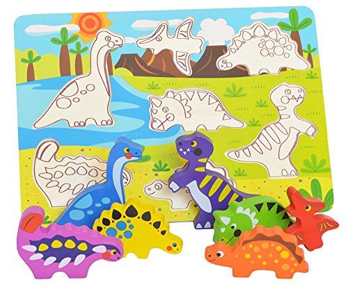 Tooky Toy-Dinosaures Puzzle dinosauri in legno multicolore, TKC392