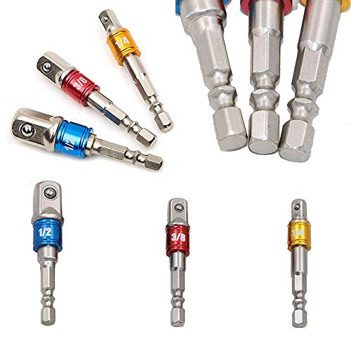 TOOLDO 3 PZ 1/4 "3/8" 1/2 "Impact Socket Adapter bit Socket Holder Hex Shank Power Drilling High Speed Nut Driver
