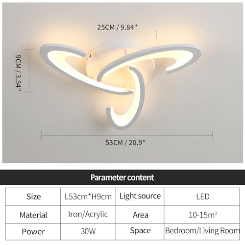 【Specifiche】Dimensioni della plafoniera a LED: L53 * W53 * H9 cm. Potenza: 30 W, Lumen: 3375LM, Temperatura del colore variabile da 3000K a 6500K, Luminosità regolabile in continuo dal 10% al 100% tramite telecomando/APP, Gamma di illuminazione: 10-15 metri quadrati, adatta per camera da letto, soggiorno, ecc.