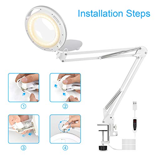Pacchetto e Garanzia - 1 x lente d'ingrandimento con paralume, 1 x morsetto da scrivania, 1 x mini telecomando. Rimborso gratuito di 45 giorni e servizio online di alta qualità. In caso di domande, non esitare a contattarci per risolvere i problemi post-vendita.