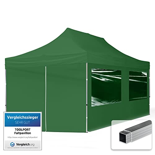TOOLPORT Gazebo Pieghevole Giardino 3x6m - 4 Laterali Alluminio Telo Idrorepellente Padiglione Mercati Sagre Verde