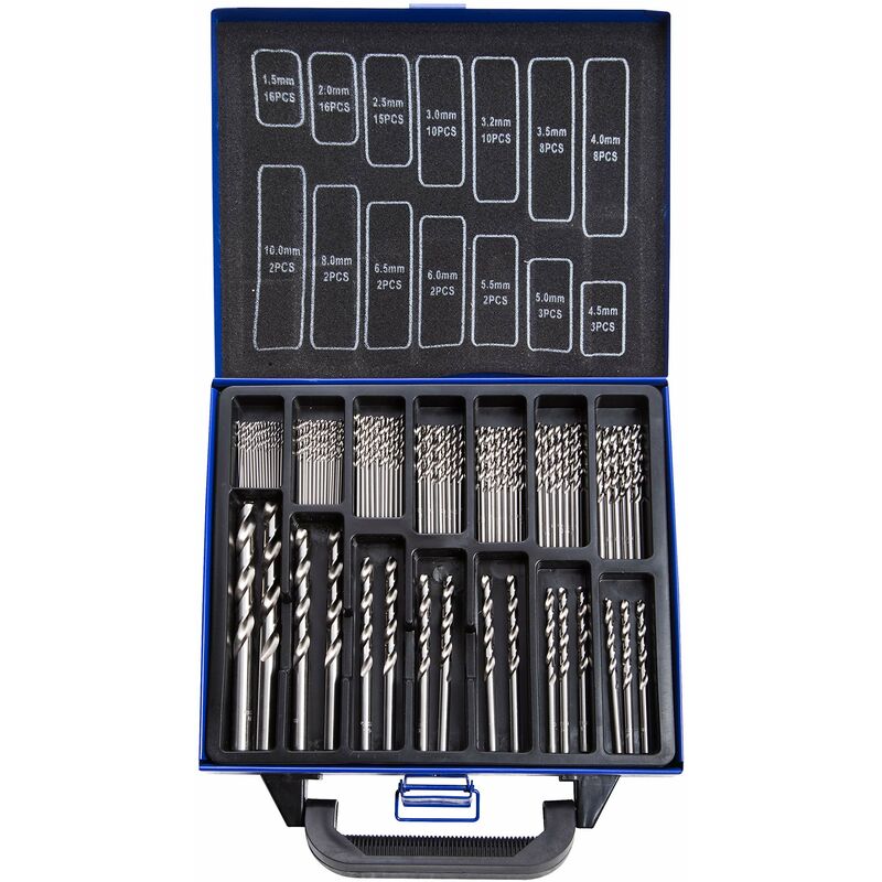 Descrizione Il set di punte in cobalto Blue Spot 99pce è realizzato in acciaio M35 per una maggiore velocità e un taglio efficace, anche ad alte temperature. Le punte di trapano sono rifinite con una punta a 135°, ideale per il taglio dei materiali in lamiera e riduce la possibilità di scivolare la punta durante l'uso, il 5% di cobalto rende anche i trapani migliori durante la foratura in materiali più duri. Come normale durante la foratura in acciaio e acciaio inox, si consiglia di utilizzare un fluido da taglio e un punzone centrale quando si avvia il foro. Il set viene fornito in una custodia in metallo per una facile conservazione e trasporto.