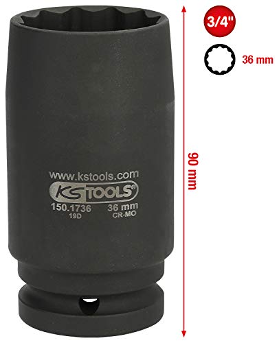 KS Tools 150.1736 3/4" bussola per avvitatore a impulsi per albero motore dodecagonale, a parete sottile, 36 mm