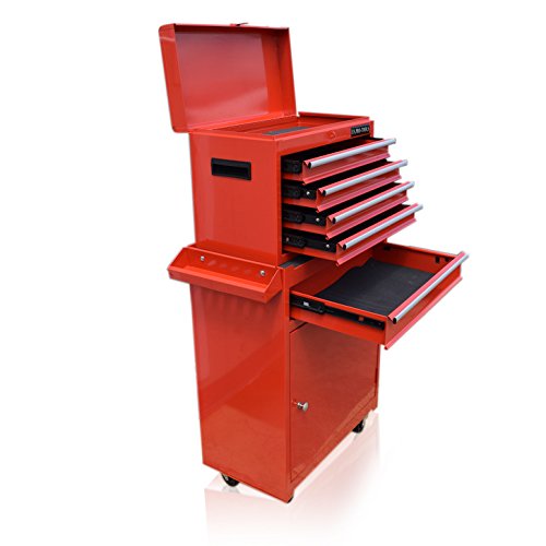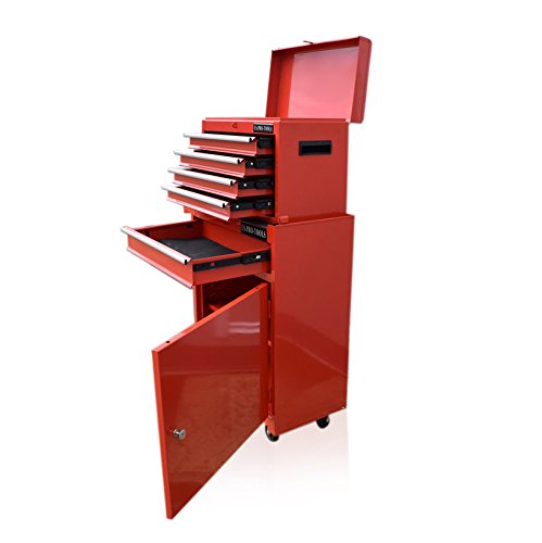 US Pro Tools, cassettiera per attrezzi colore rosso con cuscinetti a sfera per attrezzi e officina, armadietto con ruote