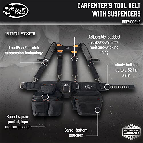 Dead On Tools - Cinghia portautensili da carpentiere in polietilene 1680 denari con bretelle (HDP400945), nero