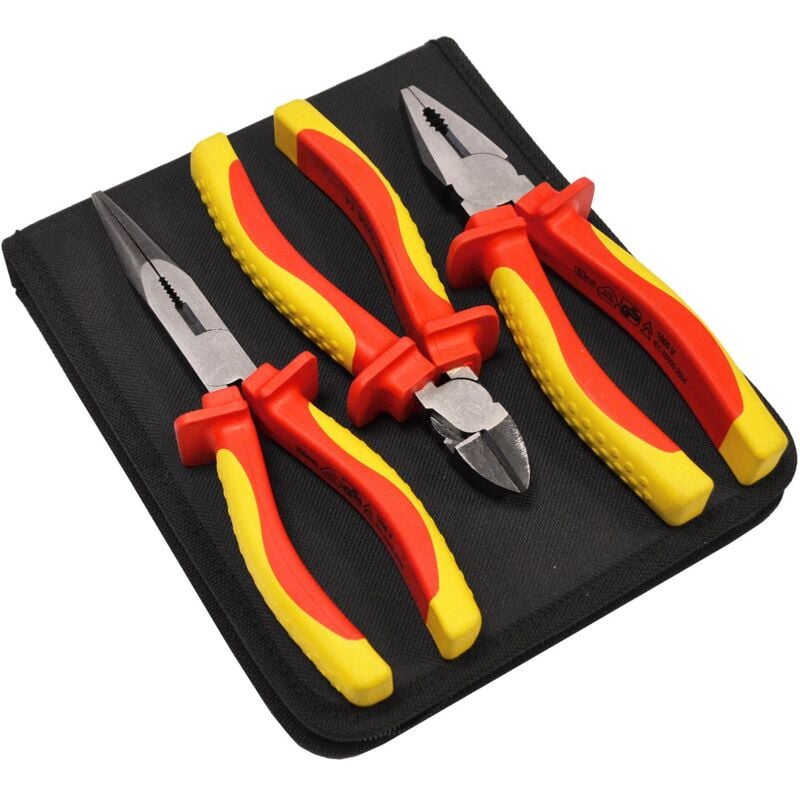 Descrizione Il set di pinze Faithfull VDE è stato progettato per essere utilizzato da personale qualificato. Il set contiene i tre tipi di pinze più usati nel settore elettrico: pinza a combinazione, pinza naso lungo e pinza con tagliente laterale. Le pinze e il tagliente laterale sono stati realizzati in acciaio cromo-vanadio di alta qualità e sono dotati di laterali taglienti da 55-65HRC, per un'ottima presa e delle buone prestazioni di taglio. Le maniglie di sicurezza, isolate e antiscivolo, hanno superato dei severi test di alto voltaggio, conformemente ai criteri IEC 60900:2004. Valutati VDE. Pinze utilizzabili in tutta sicurezza, anche quando si lavora su cavi elettrici, fino a un massimo di 1000 Volt AC. - Il set contiene: 1 tronchese a tagliente diagonale da 160 mm, 1 pinza naso lungo da 200 mm, 1 pinza a combinazione da 180 mm, 1 pratica custodia di stoccaggio. Ognuno di questi strumenti Faithfull è stato prodotto da artigiani, nel rispetto dei criteri dettati da Faithfull in