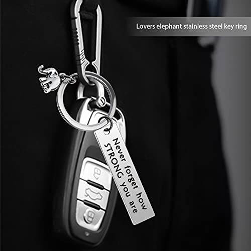 Grazioso portachiavi a forma di elefante, 2 pezzi, inciso con parole incoraggianti e ispiranti "Don't forget how strong you are" o "Never forget how strong you are".