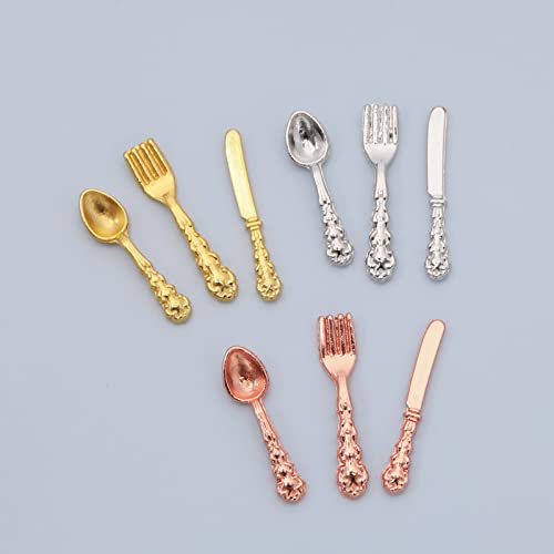 La confezione include 36 posate per casa delle bambole in miniatura in scala 1: 12 in oro, argento e oro rosa.
