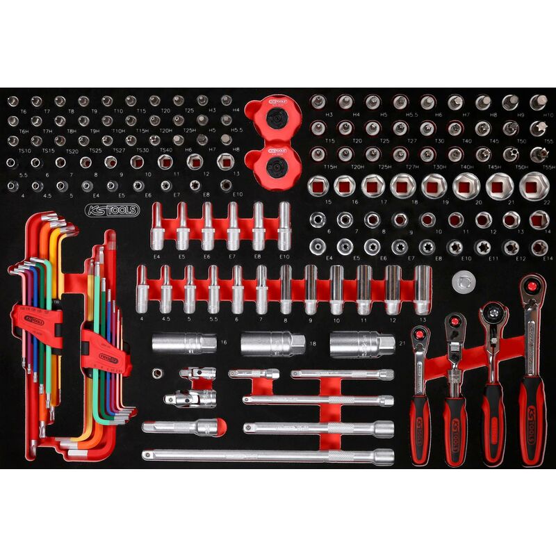 KS TOOLS Serie chiave a bussola 1/4'' + 3/8'' nell'inserto in schiuma, 156 pz