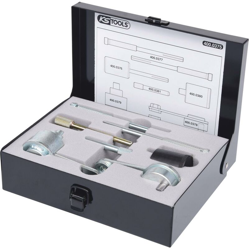 Per la riparazione professionale del motore Per il bloccaggio dell'albero a camme Per la sostituzione della puleggia dentata Elevata adattabilità In robusta cassetta metallica Campi di applicazione: Land Rover Discovery, Range Rover Sport con motori 2.7 TDV6 e Jaguar S Type con motori TDVi V6, incluso utensile di bloccaggio volano per cambi automatici e manuali (Motorcode: 276D T)